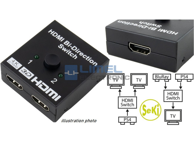 Rozbočovač/zlučovač, SeKi, HDMI generation 2.0 s manuálnym prepínačom 2x1, obojsmerný, 4K, 60Hz,