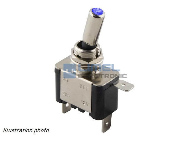 Prepínač páčkový ASW07D + LED 1-0 modrá 20A 12VDC
