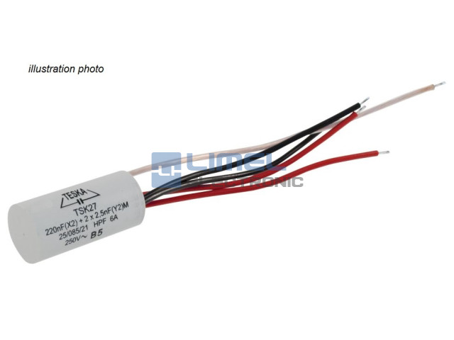 TSK27/5, Odrušovací kondenzátor 0.22uF + 2x2500pF, X2,Y2, 250VAC/6A, TESKA,
