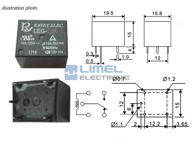 Relé 5VDC, 15A, LEG05F, -RAYEX-