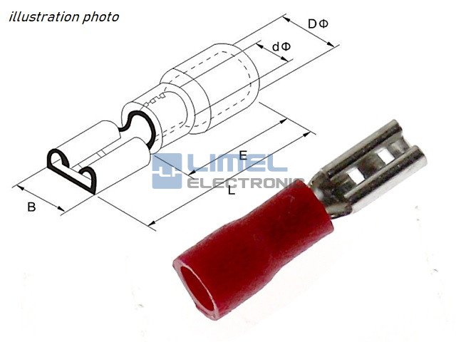 Rozmery (mm): B = 33, DØ = 3,8, dØ = 1,7, L = 18,5, E = 10