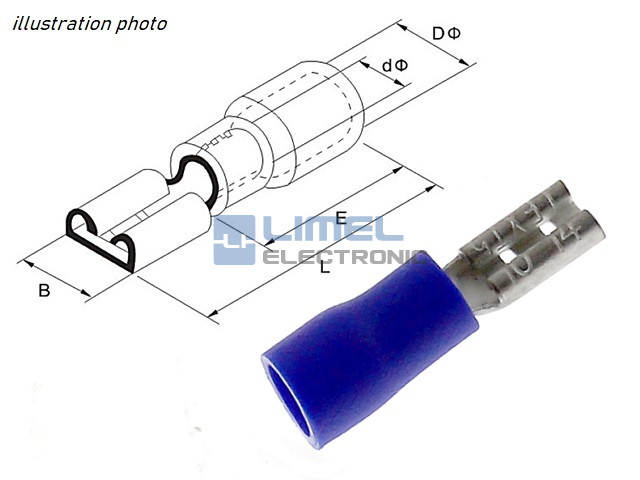 Rozmery (mm): B = 5, DØ = 4,3. dØ = 2,3. L = 19, E = 10