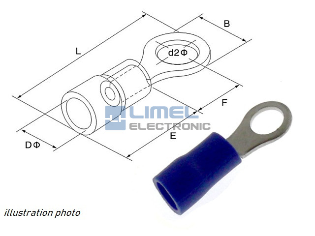 Rozmery (mm): B = 6,6. F = 6,3. L = 19,7. E = 10 DØ = 4,3. d2 = 4,3.
