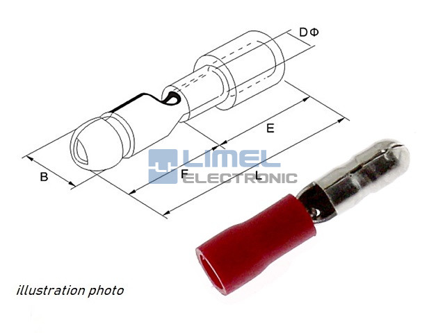 Rozmery (mm): B = 4. DØ = 1,7. E = 10,5. F = 8,5. L = 21,5