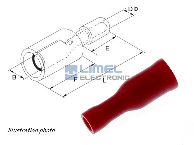 Rozmery (mm): B = 4. DØ = 1,7. E = 10,5. F = 7. L = 23,3